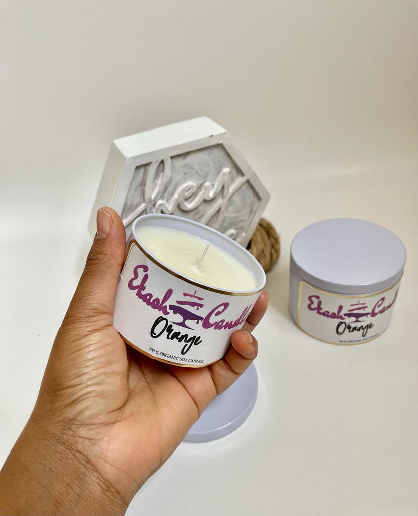 Luxury Orange Scented Candle Beautiful for home decor and nice gift for her and him. Made with organic soy wax